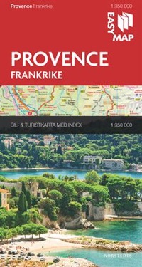 Praktisk och detaljerad karta över Provence i skala 1:350 000 att ta med på resan. Kartan visar aktuell information om vägnummer, avstånd, sevärdheter, nationalparker och mycket mer. Teckenförklaring på svenska, engelska och tyska samt ett index med ortnamn på baksidan.